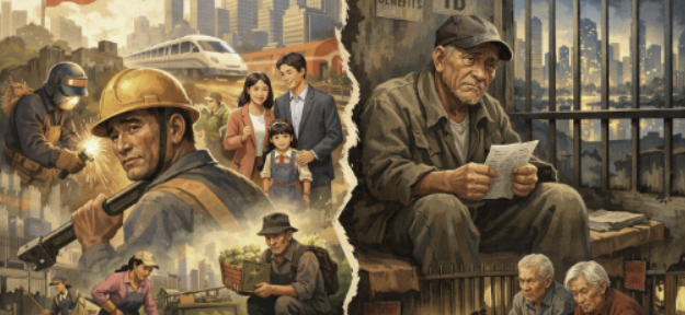 China has always boasted that the basic labor forces are the most respected and greatest people in the society, which was actually favored and supported from around the 1960s to the 1980s. Yet, as the society becomes globalized and modernized, the so called greatest labor forces are at the risk of being put aside by the society and paid much less attention than other work forces. They usually make the most efforts physically to build the society but enjoy relatively basic or even poor levels of social welfare and financial income as a whole.